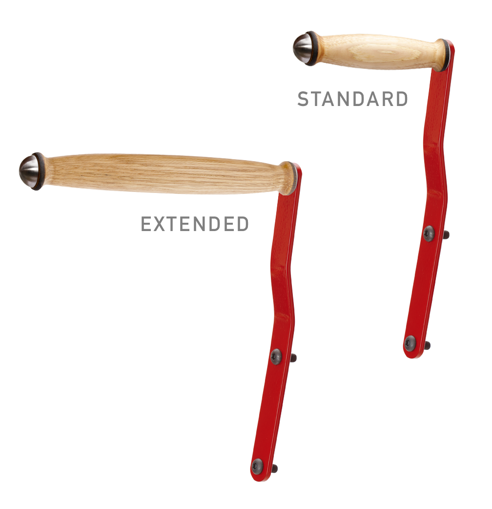 This grip is designed for customers that choose to use two hands while turning the hand crank on the flywheel.